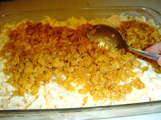 It should be about 2 cups. Spread corn flake mixture over the casserole.