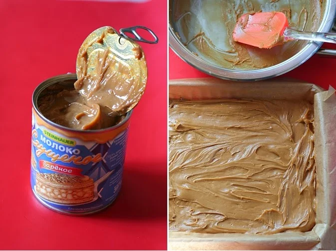 Охладете го и разнесете карамела върху охладеното тесто.