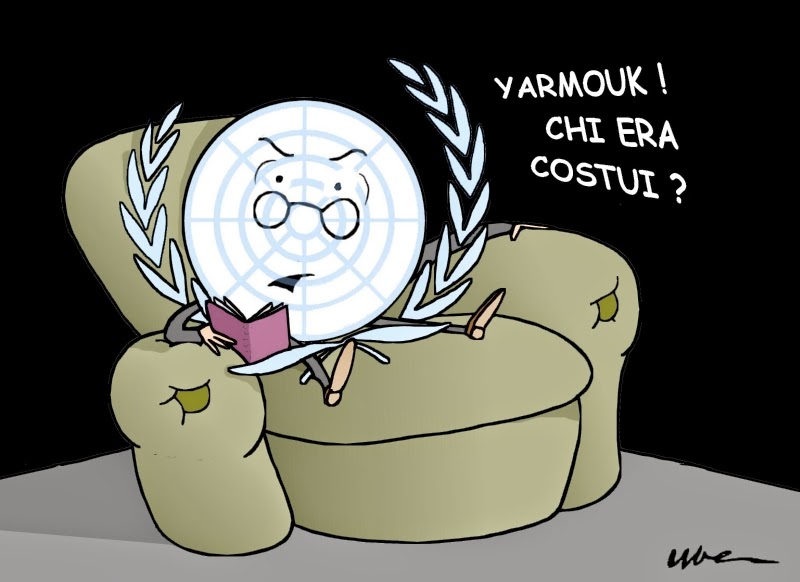 Yarmouk è un intero quartiere alle porte di Damasco diventato un campo profughi per Palestinesi e sta trasformandosi in una enorme tragedia. Cecchini dell' Isis stanno decimando chiunque cerchi di fuggire. Più di 10000 persone di cui 3500 bambini ridotti alla fame. L' ONU parla di situazione inverosimile ma non pare sappia fare qualcosa di più.