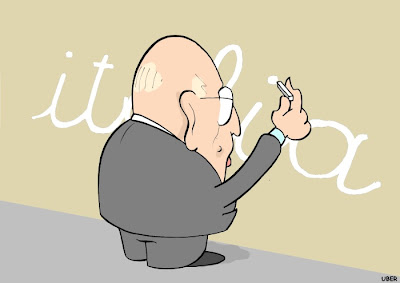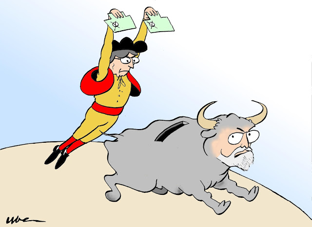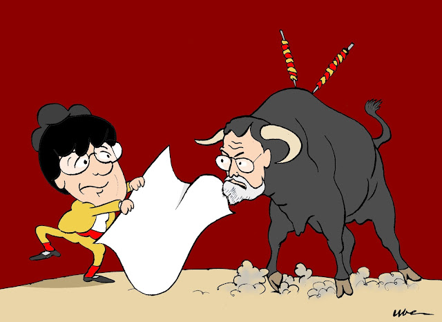 Chiedo scusa un'altra volta a Goya per approfittare ancora del suo "duello rusticano" tratto dalle pitture nere della "Quinta del Sordo" ma mi sembrava molto adatto per dipingere la brutta vicenda Catalana.