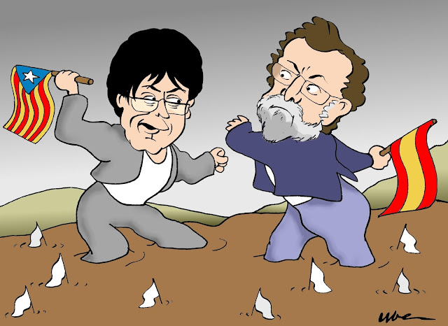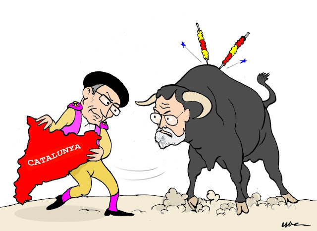 Domani il leader secessionista Puidgemont minaccia di proclamare la secessione e parallelamente Rahoy minaccia di abolire l'Autonomia e di far intervenire l'esercito. Una secessione pericolosa, probabilmente non voluta dalla maggioranza catalana, un salto nel buio che rischia di sfociare in una guerra civile grazie alla miope gestione di un Referendum da parte della Corte Costituzionale ed alla violenta repressione dello stesso da parte del Governo spagnolo.