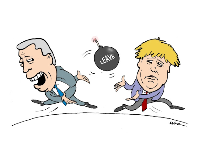 Nigel Farage e Boris Johnson alle prese con la grande difficoltà di giustificare i benefici promessi e la valutazione superficiale degli effetti reali dell'uscita dalla UE.