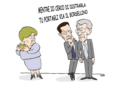 La Merkel non cede, nessuna apertura verso gli Eurobond e verso maggiori poteri alla BCE nonostante l'attacco congiunto Sarkozy/Monti nell'incontro trilaterale di Strasburgo.