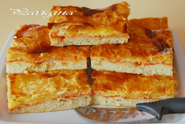 L' acqua di governo della mozzarella, rende l' impasto particolarmente soffice e non lo lascia seccare.
