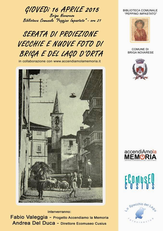 Per cui l'appuntamento è a Briga Novarese, presso la Biblioteca "Peppino Impastato" (sempre a proposito di memoria) per parlare del progetto dell'Archivio iconografico del lago d'Orta.