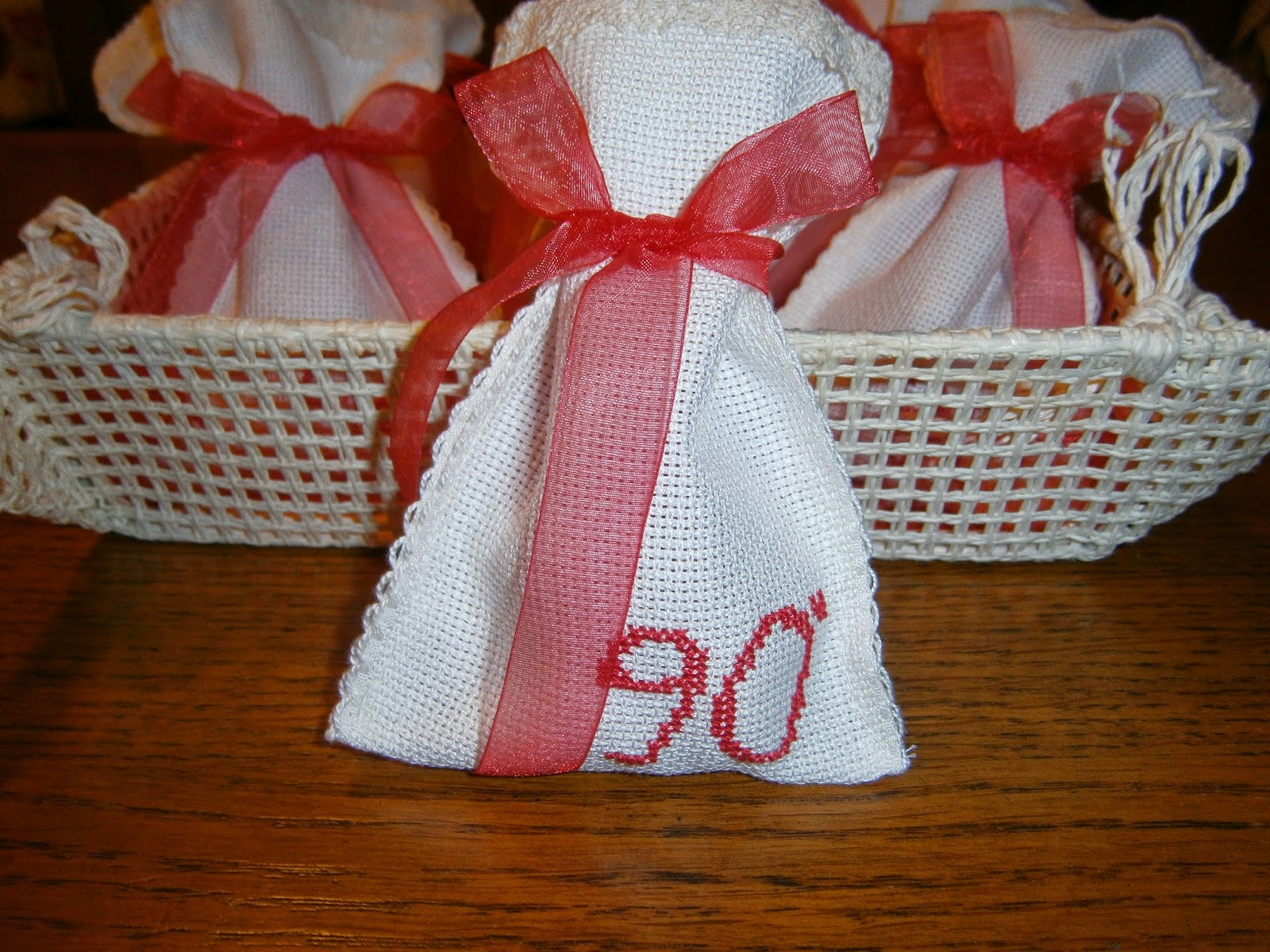 Dopo una pausa ancora più prolungata ritorno da voi carissime amiche con questo post dedicato a dei sacchetti che ho preparato a sorpresa per una persona di famiglia a me cara una nonna acquisita da parte del mio consorte, completamente ideati da me e confezionati, sono state molto gradite e io molto soddisfatta, nel contempo ho realizzato diversi lavoretti che tempo pemettendo cercherò di postare,.Ultimamente sono stata poco presente sui vostri blog ma vedo che avete sempre da proporre molte cose interessanti, augurando a tutte un buon fine settimana, al prossimo post, Imma...