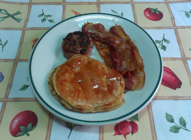 EN PRIMER LUGAR HACER LA CREMA PARA LOS PANCAKES PONIENDO TODOS LOS INGREDIENTES EN EL VASO DE LA BATIDORA O A MANO Y MEZCLANDO BIEN QUE NO QUEDEN GRUMOS , SEGUIDAMENTE EN UNA SARTEN UNTADA DE MARGARINA IR HACIENDO LOS PANCAKES , ESTARAN PARA DARLES LA VUELTA POR EL OTRO LADO CUANDO HAGAN AGUJERITOS ALREDEDOR , APARTAR EN UN PLATO UNAS ENCIMA DE OTRAS PARA MANTENER CALIENTES , EN OTRA SARTEN HACER EL BEICON A FUEGO MEDIO HASTA DEJAR BIEN TOSTADITO , APARTAR EN PAPEL DE COCINA , EN LA MISMA SARTEN PONER UNA BOLITA HECHA CON LA CARNE DE CADA SALCHICHA Y LUEGO APLASTADAS UN POCO , CUANDO ESTEN TERMINADAS SERVIRLAS EN UN PLATO PLANO GRANDE ACOMPAÑADAS DE DOS PANCAKES Y ENMEDIO PONER UN POQUITO DE MARGARINA , AL LADO AGREGAR UNAS TIRAS DE BEICON Y ROCIAR CON EL SIROPE DE ARCE ,( ESTE DESAYUNO LO HE COMIDO EN HOUSTON HECHO POR MI CUÑADA , Y YO LO HE PREPARADO AQUI EN ESPAÑA , ESO SI CON MARGARINA , PORQUE LA RECETA ORIGINAL ES CON MANTEQUILLA ).............ESPERO OS GUSTE.........