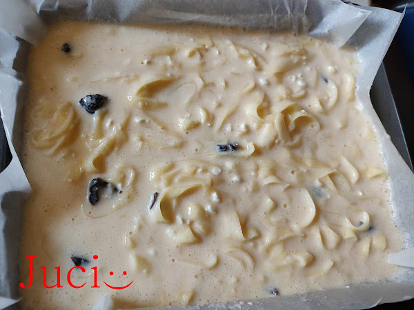 A tojássárgákat a cukorral habosra kavarjuk, rendre hozzáadjuk a túrót, a tejfölt, majd a laskát és a mazsolát. A végén szép óvatosan hozzáadjuk a keményre vert tojásfehérjéket is. Vaníliaeszenccel és friss reszelt citromhéjjal ízesítjük.
