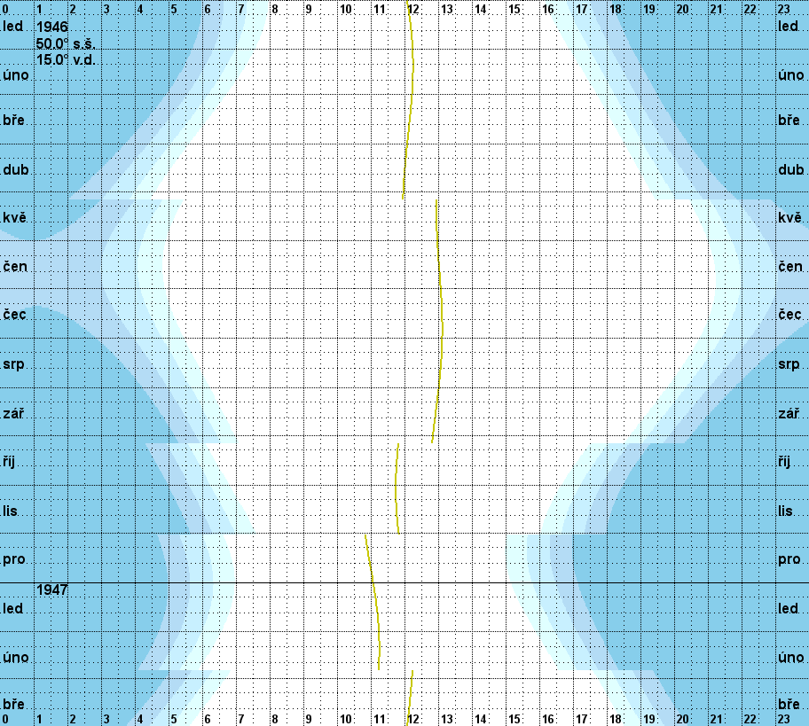 Popis grafu svítání a soumraku naleznete na stránce Grafické znázornění svítání a soumraku v roce
