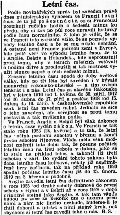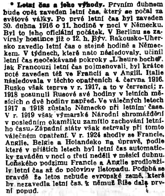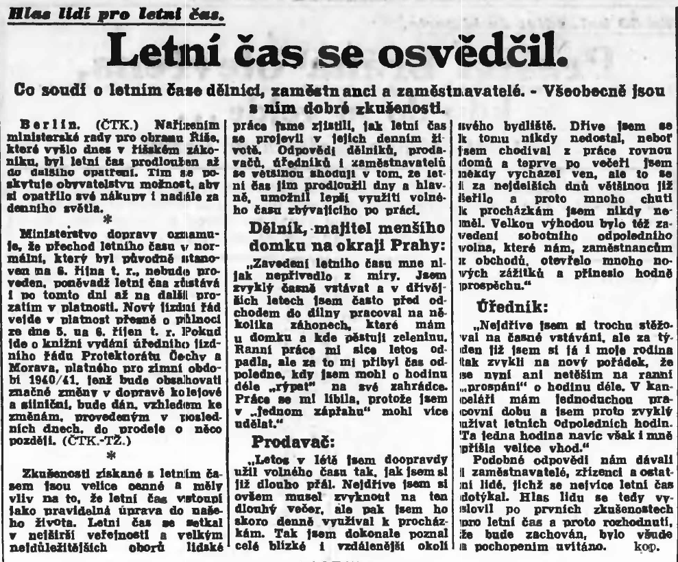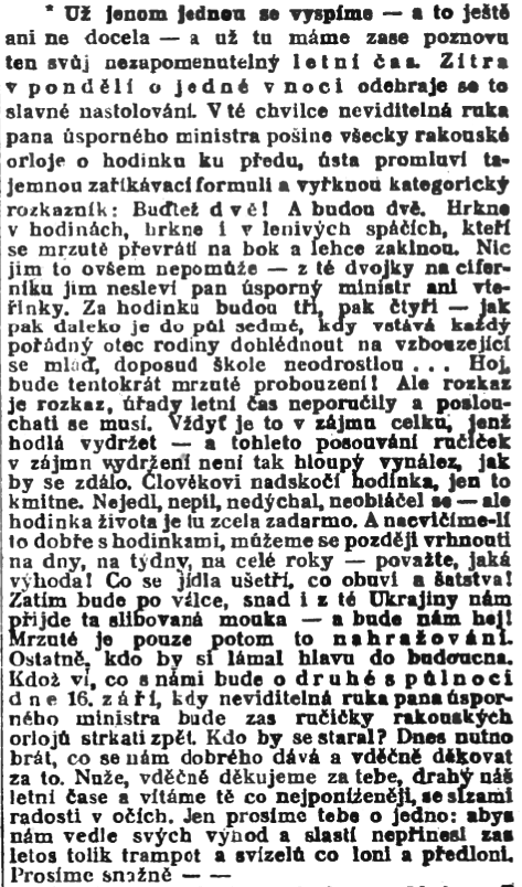 Oznámení o letním čase v roce 1940 v dobovém tisku