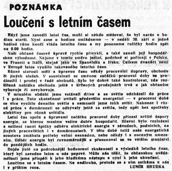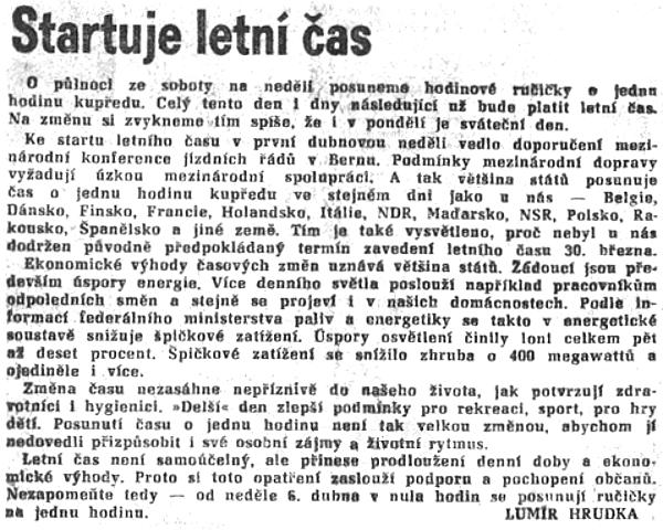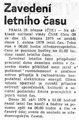 Oznámení o letním čase v roce 1979 a 1980 v dobovém tisku