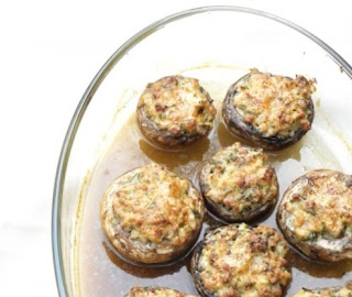 Serpenyőben csöppnyi zsiradékot forrósítunk, megpirítjuk rajta a szalonnát, majd előbb a hagymát, utána a gombát is hozzátesszük, 2-3 percig dinszteljük. Levesszük a tűzről, és az időközben felkockázott mozzarellát belekeverjük. A felaprított petrezselyemmel és kakukkfűvel, valamint csilivel ízesítjük. Óvatosan sózzuk (mert a szalonna is sós), borsozzuk, majd a gombakalapokba kanalazzuk. Mindet a tepsibe sorakoztatjuk, és kb. 20 percig vagy addig sütjük, amíg a mozzarella meg nem olvad, és kissé meg nem pirul.