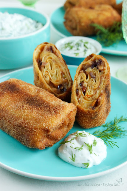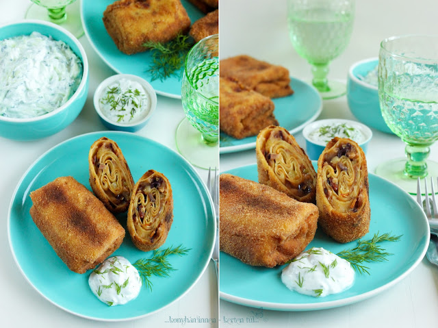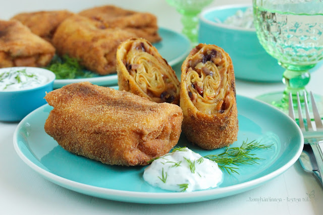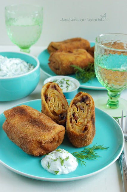 Néha előfordul, hogy megmarad néhány palacsinta. Elég ritkán, de azért van ilyen. :) Olykor húsos palacsinta készül belőle, vagy apránként szépen elkopik, de most más sorsot szántam nekik. :D Rántott palacsintát még sosem készítettem -pedig nagyon régóta tervezem már-, így gondoltam ez most jó alkalom lesz a kísérletezésre. Egy nyárias, kicsit mediterrán étel kerekedett belőle, ami mindkettőnknek nagyon ízlett. Azt hiszem, máskor kénytelen leszek több palacsintát sütni, hogy biztosan maradjon ehhez az ételhez. ;)