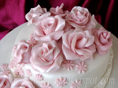 Kiskukta ötlete ihletett, hogy mini rózsákkal díszítsem a torta oldalát. Viszont én nagyon leegyszerűsítettem a mini rózsák készítését, mert most nem volt túl sok kedvem a rohangáló gyerekek között aprólékos munkát végezni.