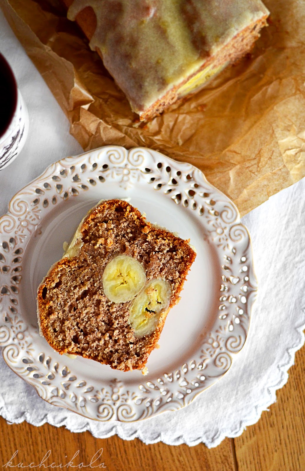 Ciasto z bananami i bananowym lukrem: