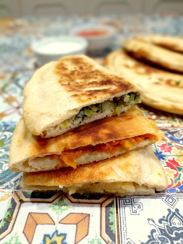 Iniziamo il viaggio nella cucina afghana con un pane ripieno, cibo che accompagna l’umanità dalla notte dei tempi, nato dall’ingegno di utilizzare ingredienti di scarto o poco appetibili.
