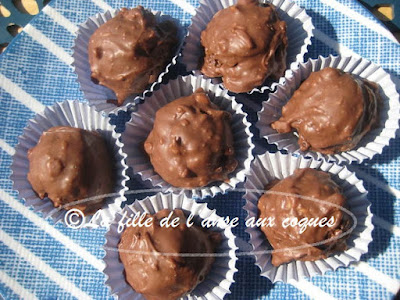Je vous présente la première confiserie réalisée que vous pouvez préparer d'avance et congeler. J'ai déjà fait une truffe à base de tartinade aux noisettes. Cette dernière dénichée ici diffère légèrement. Je n'ai pas utilisé la tartinade bien connue, mais une autre qui ne contient pas d'huile de palme. Vous pourriez aussi préparer vous-même votre tartinade de noisettes si vous préférez. J'ai une excellente recette ici. J'aurais pu la cuisiner, mais comme je ne pète pas la forme, je me suis simplifié la tâche. La préparation s'est faite sans difficulté. Seul le façonnage des truffes s'est avéré plutôt salissant. Les gants de nitrile pourront être fort utiles si vous faites. Pour la dégustation, laissez tempérer au moins 15-20 minutes les truffes. Vous pourrez ainsi apprécier la truffe à son meilleur. Cela prévaut d'ailleurs pour tout genre de truffes. Celle-ci est bien crémeuse et le goût de la tartinade aux noisettes bien présent. Très satisfaite du résultat! Cette truffe est délicieuse.