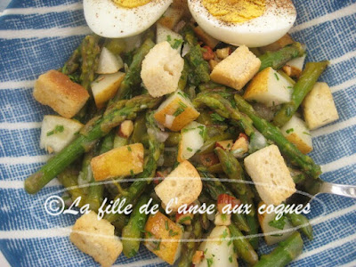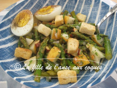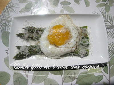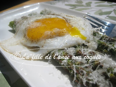 Préparation : Lors de la cuisson des œufs, j'ai couvert partiellement la poêle pour hâter la cuisson. Je n'aurais pas dû faire! Sur les photos, vous voyez quelques taches blanches sur le jaune, signe d'un début de cuisson du blanc par-dessus le jaune. Ce qu'on veut, c'est un œuf miroir et coulant. J'ai vite réalisé et retiré le couvercle. Heureusement, à la dégustation, le jaune était encore coulant. Que vous dire à propos de ce plat si ce n'est que c'est tout simplement délicieux. Je servirais sans hésiter pour un brunch. Ce pourrait être aussi un excellent déjeuner tout comme un repas léger du soir. Pour l'amatrice d'asperges que je suis, ce sera à refaire absolument! Trop bon, et vraiment facile à préparer!