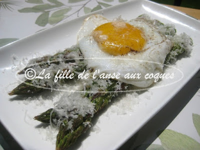 Je ne sais pas si je vous ai déjà dit être une fan finie de Masterchef Australie depuis plusieurs années. J'ai d'ailleurs plaisir à revoir les reprises des différentes saisons. Ces dernières semaines, c'est la saison 14 sur Casa qu'on peut revoir avec des anciens ainsi que de nouveaux participants. J'avais manqué quelques épisodes, dont celui d'un défi avec l'ingrédient ''oeuf''. J'ai tout de suite été attirée par la recette d'Aldo, un ancien d'origine italienne qui présentait des asperges à la milanaise, un plat que je ne connaissais pas, et qui contenait mon légume préféré. J'ai fait des petites recherches pour réaliser que c'était d'une simplicité désarmante à préparer. Ce n'est évidemment pas la version d'Aldo que je vous présente, lui qui avait préparé une sauce aux anchois pour accompagner l'œuf et les asperges. Ma version est un mélange de différentes recettes finalement, mais qui respecte l'idée de base d'utiliser des asperges, des œufs et du parmesan.