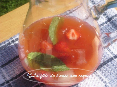 Notre été a tardé à arriver mais il est maintenant bien installé. Il fait chaud, vraiment chaud! Dans mon cas, c'est difficile, et j'ai du mal à vivre avec cette chaleur lol. Inutile de vous dire qu'il est important de bien s'hydrater. J'ai déniché cette belle idée de rafraîchissement dans mon Coup de Pouce de juillet. La recette ne demande aucune préparation complexe, et le tout se fait rapidement. J'aimais aussi l'idée d'utiliser nos fraises du Québec pour préparer cette boisson aux couleurs invitantes. La menthe fait un joli contraste lol. J'ai pensé utiliser du sirop d'érable pour la sucrer. Cela lui confère très bon goût. Seul bémol, malgré que j'aie un peu gonflé les quantités de certains des ingrédients, le rendement est assez faible. Seulement quatre portions! Vous pouvez toujours mettre davantage de glaçons, mais vous diluerez quelque peu le bon goût de fraises et de menthe de cette boisson très rafraîchissante.