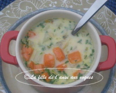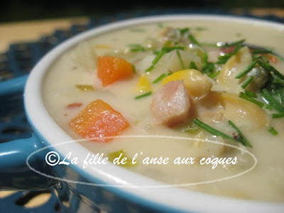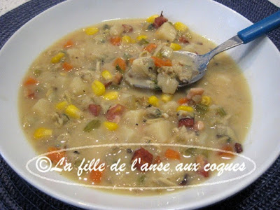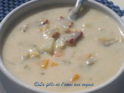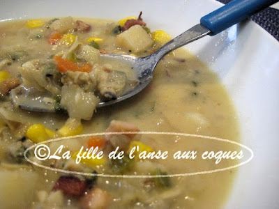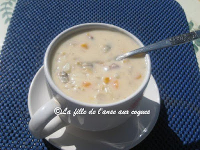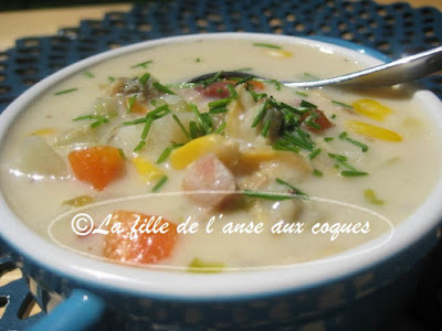Cela fait une éternité que j'ai fait une chaudrée du genre. J'ai trouvé ici de quoi m'inspirer pour me concocter une soupe bien à mon goût, et garnie de légumes. Pour le côté crémeux que je voulais, j'ai décidé d'utiliser un produit végétal, du Belsoy à l'avoine, mais de la crème 15 % à cuisson serait parfaite aussi. Cela dit, je n'ai pas goûté de différence à la dégustation. Le Belsoy a fait son travail. Une bien belle alternative pour ceux qui mangent vegan, mais aussi moins riche que la crème pour ceux qui se soucient des matières grasses , et ceci sans perdre le côté crémeux. Certains vont me dire qu'il manque de la farine comme épaississant. Je n'ai pas utilisé; je n'en voyais pas la nécessité. La chaudrée est bien consistante, et cela me suffit. Elle est parfaite pour moi, et regorge de légumes. C'est tout simplement délicieux et j'adore!
