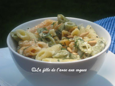 - ¾ lb (375 g) de pennes (j’ai mis 3 2/3 tasses/286 g de penne tricolores)