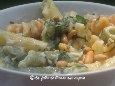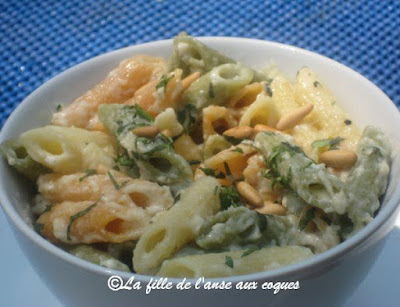 Y'a de ces recettes où on peut dire qu'elles sont vraiment très cochonnes lol, du genre qu'on ne se permet qu'à l'occasion, comme celle-ci par exemple lol. Ces pâtes aux trois fromages sont rapides à préparer, faciles d'exécution et succulentes. Tout pour plaire quoi! Lol. La recette originale de la défunte émission Les saisons de Clodine contient du mascarpone que je n'avais pas. Il faut dire que ce dernier n'est vraiment pas donné. Il existe une recette de mascarpone maison que j'expérimenterai éventuellement, mais pour cette recette, j'ai utilisé du fromage à la crème pour accompagner le parmesan et notre bon fromage québécois, le Oka. Les pignons et le basilic en finale complètent l'harmonie en parfumant agréablement ce plat de pâtes. Un délice!