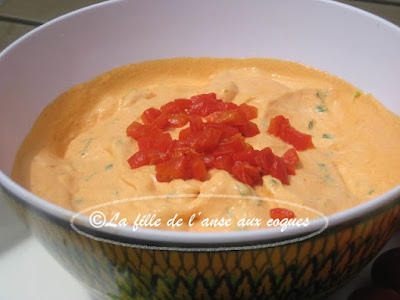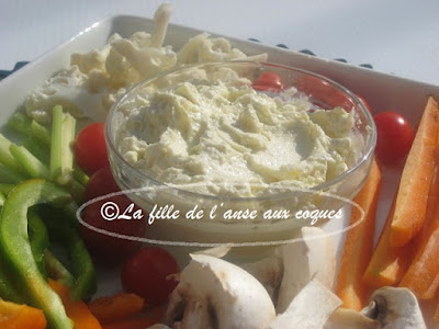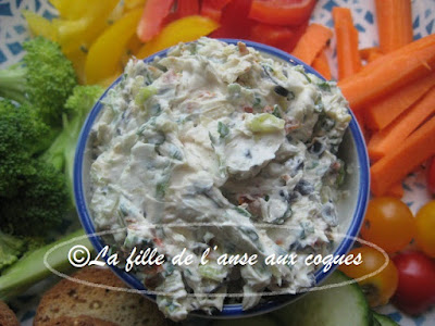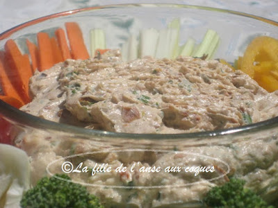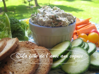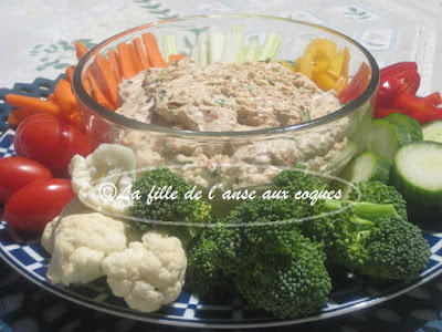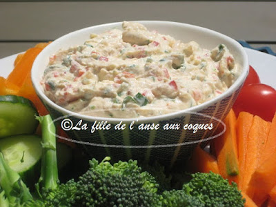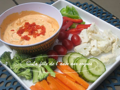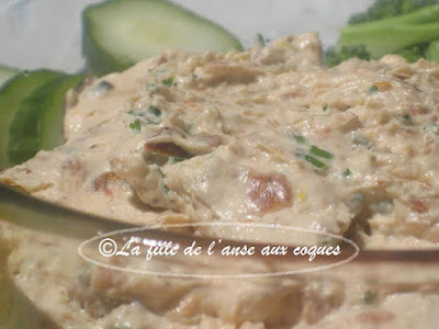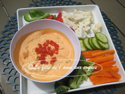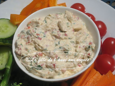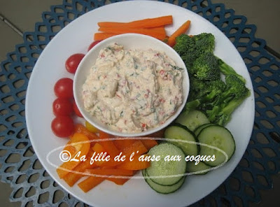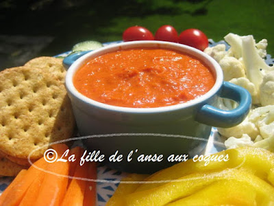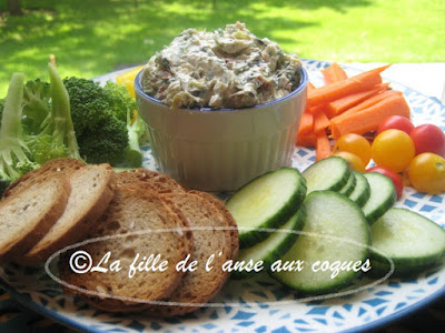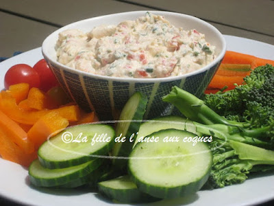Nous recevions récemment des amis par un bel après-midi ensoleillé. Il faisait un peu frais, mais c'était quand même très agréable. J'avais pensé leur offrir un petit encas avant que nous nous rendions dans un bon resto du coin. J'ai vu ici cette trempette chaude aux crevettes nordiques qui me faisait de l'œil. J'étais certaine que ce serait bon. On ne précisait pas exactement avec quoi servir la trempette, mais je voyais sur les photos du site ce qui me semblait être des triangles de pitas grillés, ce que j'ai donc préparé. J'ai simplement badigeonné d'huile d'olive, et assaisonné de sel, de poivre, et d'un peu de poudre d'ail. Je ne voulais pas que le goût des pitas dénature celui de la trempette. Je ne vous donne pas de recette puisque j'y suis allée au piffomètre, mais vous pouvez aller voir dans ma section Divers. Vous y trouverez une version qui peut vous inspirer sur la préparation des pitas. J'ai coupé en 8 triangles chacun des pitas, et j'ai aussi coupé en deux au pli de chacun des triangles. Ce n'est rien de compliqué à préparer, et avec la trempette, c'était parfait. Cette trempette a été bien populaire et très apprécié. Elle est délicieuse. Il est resté bien peu du plat. J'ai partagé le lendemain ce qui restait avec mon conjoint. C'était tout aussi bon que la veille. J'avais prévu mettre en garniture sur le dessus de la trempette quelques crevettes supplémentaires, mais j'ai complètement oublié. C'était pour la beauté du plat hihi, mais cela n'a rien changé au goût. :-) Cette recette est définitivement à refaire pour moi!