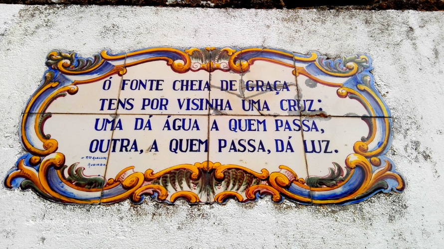 | Ó fonte cheia de graça, tens por vizinha uma cruz: Uma dá água a quem passa, outra, a quem passa, dá luz. |