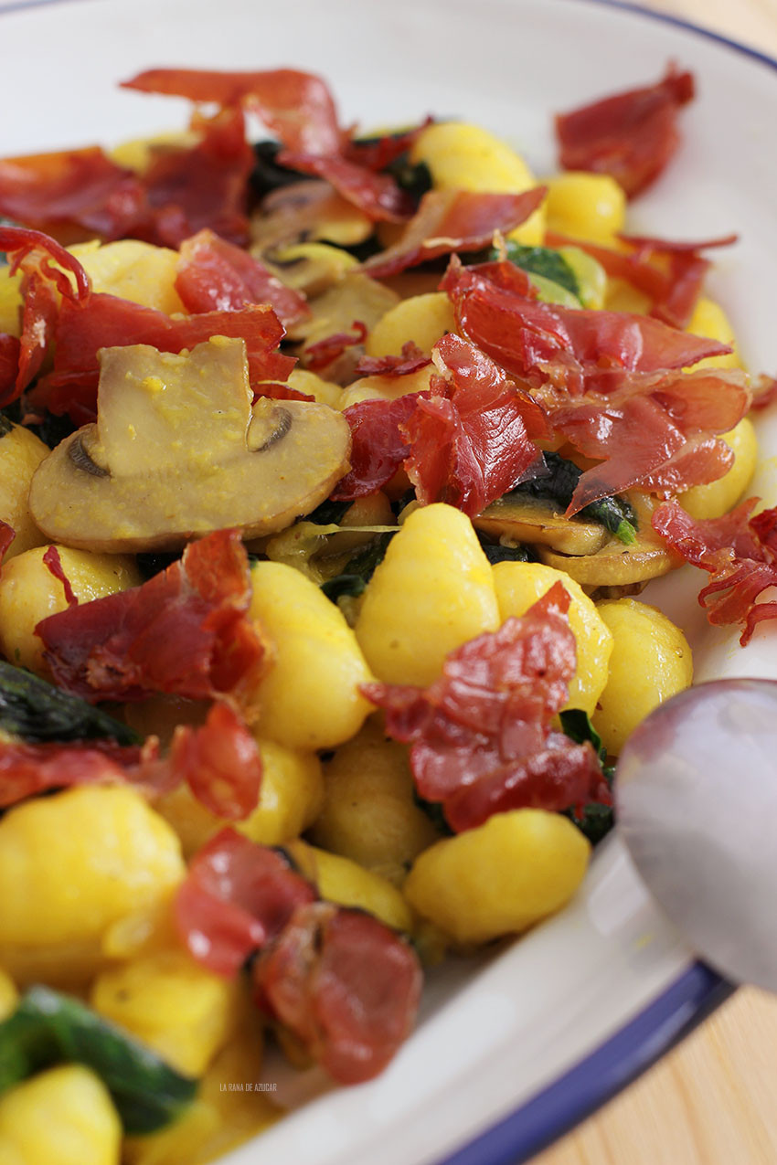 - En este punto echamos los champiñones que habíamos reservado, mezclar con cuidado.