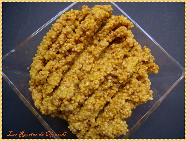 Dependerá de cómo queramos el triturado de la pasta. Yo he preferido dejar la mayoría de las semillas enteras. Si se desea una consistencia fina, habrá que pulverizar las semillas antes de añadir los líquidos.