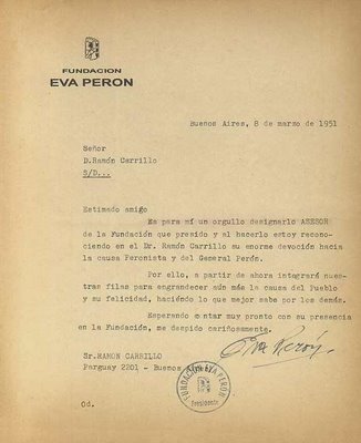 "Deseo que todos mis bienes, que considero en gran parte patrimonio del pueblo y del movimiento peronista, que es del pueblo, que todo lo que de La Razón de mi vida y Mi Mensaje, sea considerado como propiedad absoluta de Perón y del pueblo argentino."