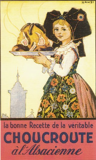 “An early sign of fall in the Alsatian wine villages that spread out from the Rhine River to the crest of the Vosges Mountains is a prominent market sign announcing: Nouvelle Choucroute. This means the season's first batch of sauerkraut, still a bit crunchy and with just a hint of acidity, is in the market, ready to be garnished, then roasted with an array of salted and smoked pork, lean bacon, and perhaps a half dozen different sausages, all to be washed down with plenty of crisp and chilled local white Riesling.” So said Patricia Wells In a 1982 NYT’s article.