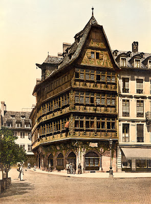 I love the picturesque villages and towns of Alsace but must admit, Alsace’s capitol, the very ancient Roman city of Argentina, now Strasbourg, is a favorite of mine – not just because it saw the birth of Gutenberg’s printing press and the French anthem Les Marseillaise. It contains Strasbourg Cathedral –– the tallest building in the world from the 17th to the 19th century, as well as other marvelous streets and buildings, most especially the 15th century Kamerzell Altehaus –– I love all its swoops and droops and carvey bits. The city is a UNESCO World Heritage site full of half-timbered houses, wooden bridges and canals.