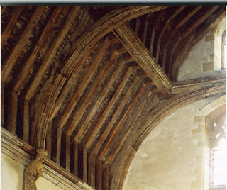 covered by a magnificent chestnut ceiling with life-sized figures of peasants