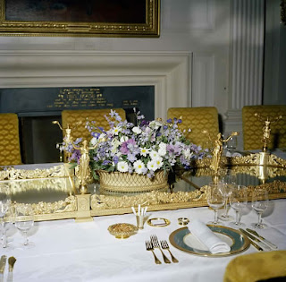 Mrs Kennedy at a grand White House table with an impressive French surtout de table