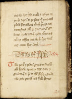 Take Fyges & Raysouns. & waisshe hem in Wyne and grinde hem smalewith apples & peres clene ypikede (picked). take hem up and cast hem in a pot wiþ wyne and sugur. take salwar Salmoun [2] ysode (boil). oþer codlyng (cod), oþer haddok, & bray hem smal. & do þerto white powdours & hool spices. &salt. and seeþ (boil-reduce) it. and whanne it is sode ynowgh. take it up and do it in a vessel and lat it kele (cool). make a Coffyn an ynche depe & do þe fars þerin (stuff). Plaunt it aboue [3] with prunes and damysyns. take þe stoneout, and wiþ dates quartereded [4] and piked clene. and couere the coffyn, and bake it well, and serve it forth.