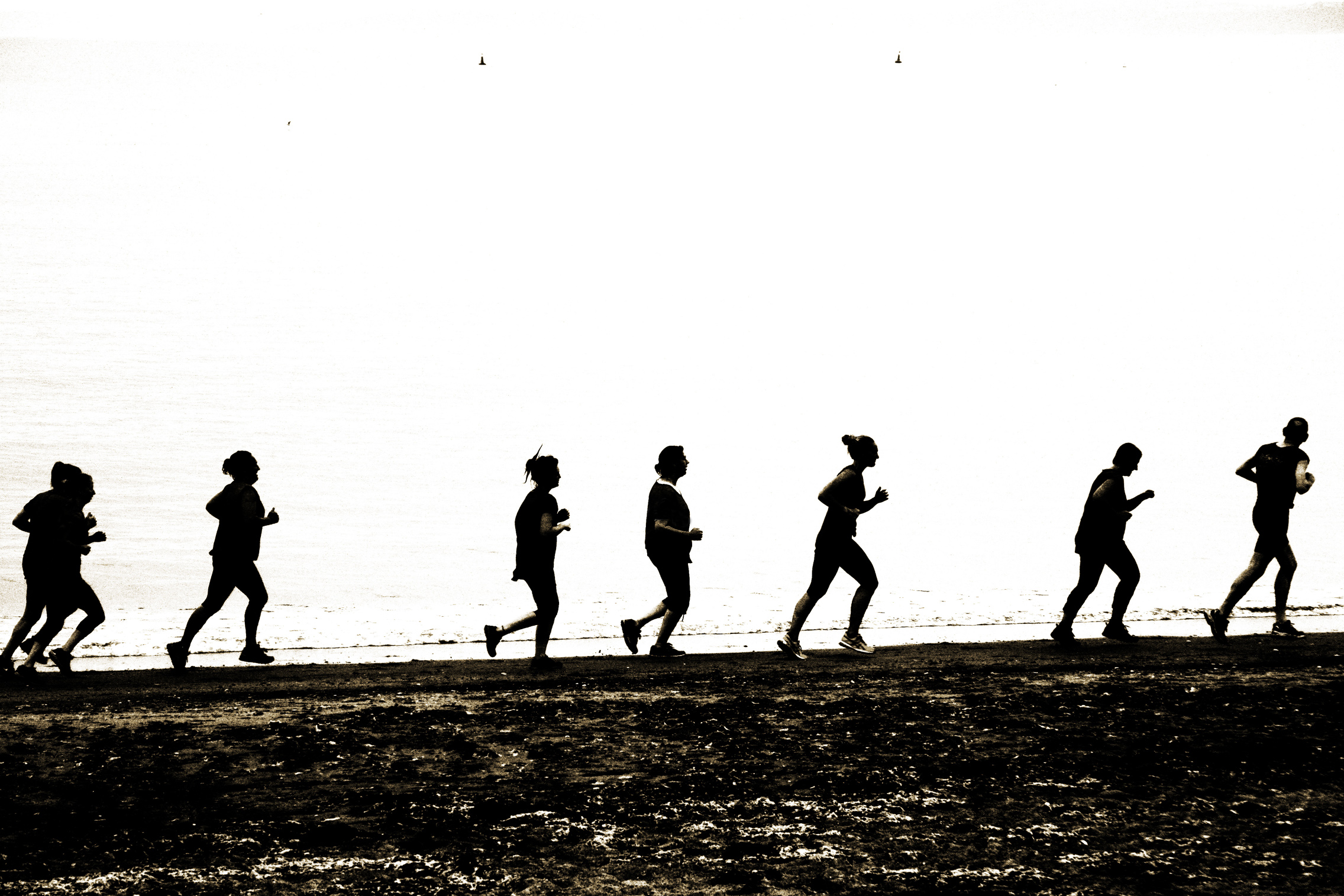 as they reach the distant sand bank