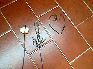Fiz esses enfeites para o meu canteirinho... são feitos em arame preto flexível e depois espetados na terra :)