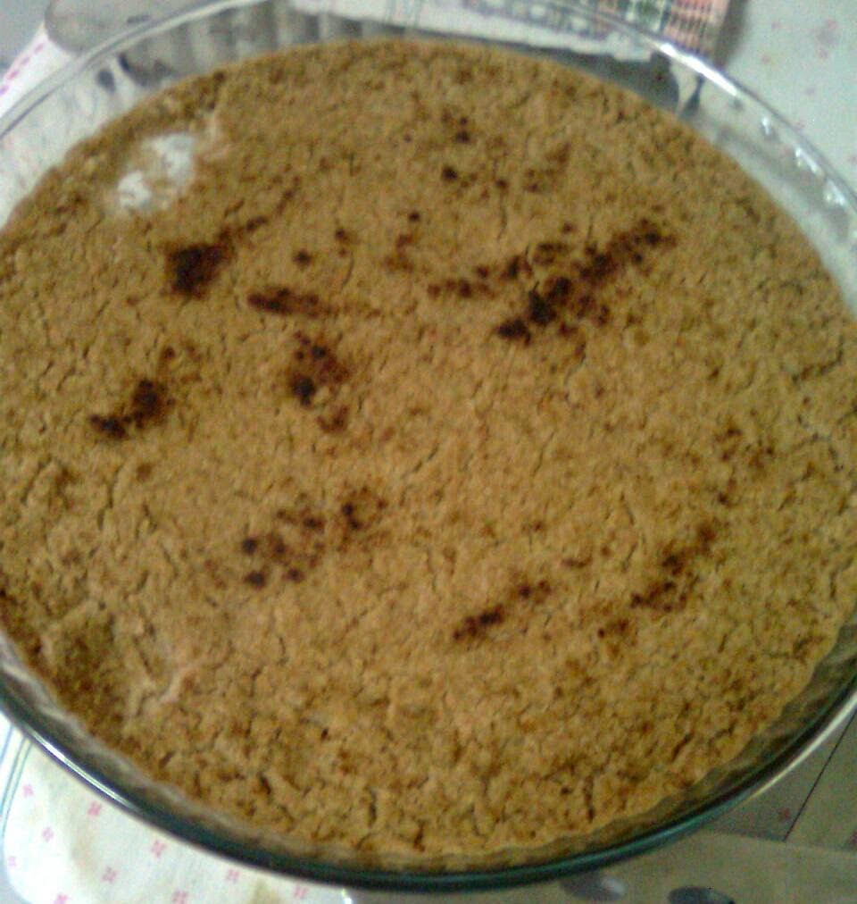 Para o recheio, juntar farinha de aveia e uma lata de leite de côco e mexer com uma vara de arames. Levar ao lume e ir juntando leite de arroz à medida que engrossa. Juntar 1 colher de sopa de agar-agar e dissolver bem. Juntar o sumo de 1 ou 2 limões. Quando a farinha e o agar-agar estiverem dissolvidas juntar algumas colheres de sopa de açucar mascavado (ir provando). Mexer tudo e tirar do lume. Deixar repousar enquanto faz a crosta.