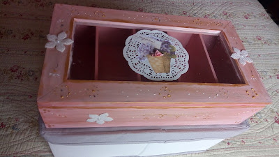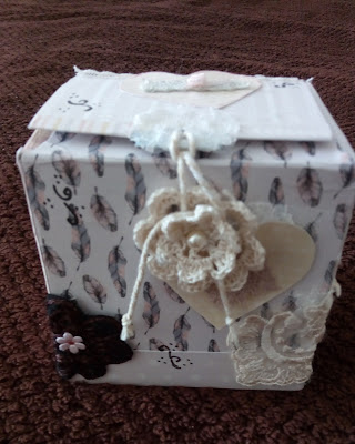 To finalize, I glue a trim of lace around the lid of the box with white glue.