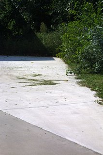 I just got done taking my turn mowing the lawn. Haha... The best part of it? The landlady happened to be delivering mail (Yes, she's a mailperson, too) today and saw me mowing! She smiled and waved... I smiled and waved. LOL Here's what the driveway looks like when I'm done mowing... No sweeping done, either.