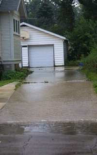 Here's a view of the driveway from across the street. It had stopped raining and the flooding has subsided some....
