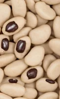 El día anterior pasamos brevemente las alubias por un triturador de alimentos. No se trata de reducir las mismas a harina, si no romperlas para que se desprenda con más facilidad la piel y el punto negro que las caracteriza. Una vez rotas las sumergimos en abundante agua y las dejamos en remojo durante toda la noche.