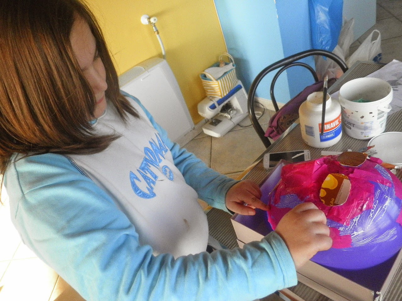 poi abbiamo lasciato asciugare e decorato con il glitter (che non si vede perchè arianna ha lasciato la maschera a scuola!)