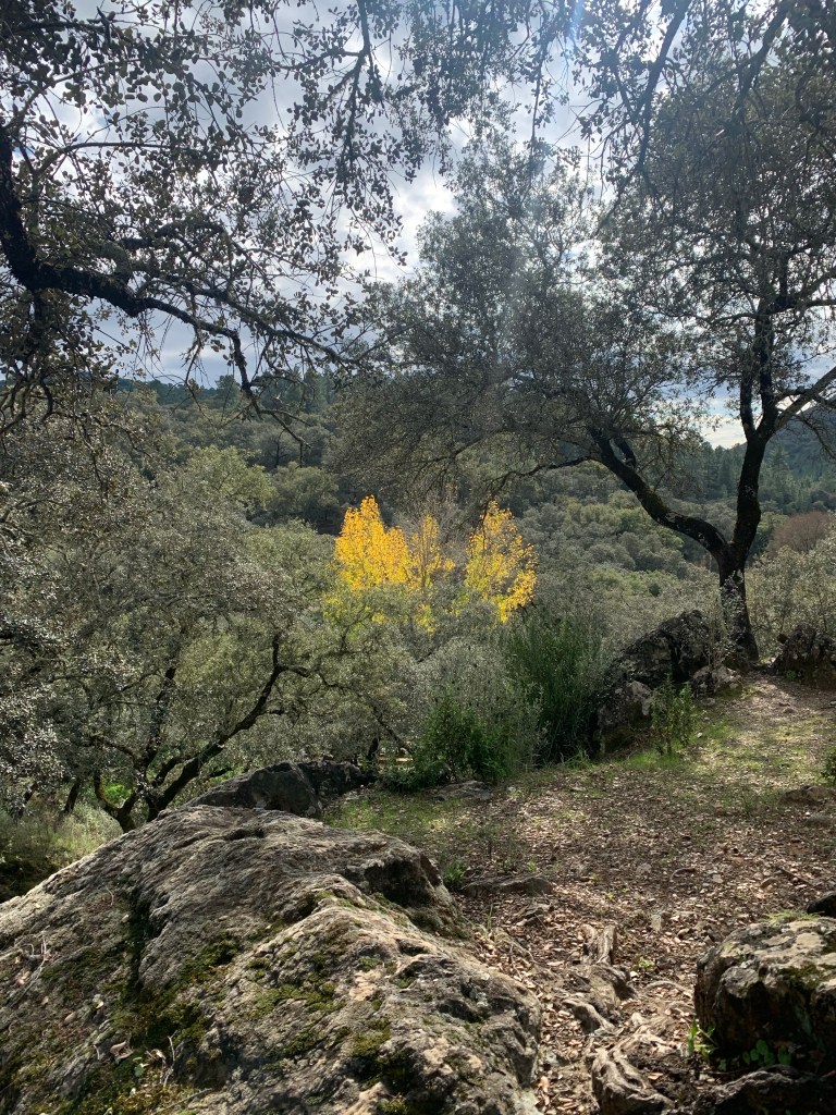 Autumn in the Sierra Aracena is particularly beautiful and many people come to visit as there is an ‘exotic’ mix of trees changing colour with others that are always a Mediterranean green, like the olives, cork oaks and holm oaks and some palms in the town of Aracena.
