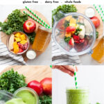 Here’s what you’ll do: 1. Add the kale to the bottom of the blender, then add in the frozen fruit, and apple. 2. Next, pour in the apple juice. 3. Lastly, add the collagen. 4. Put on the lid and blend on low, increasing the speed to high and blend until completely smooth. You will see little red bits of apple skin, that’s ok! 5. Pour into a glass and enjoy immediately. |