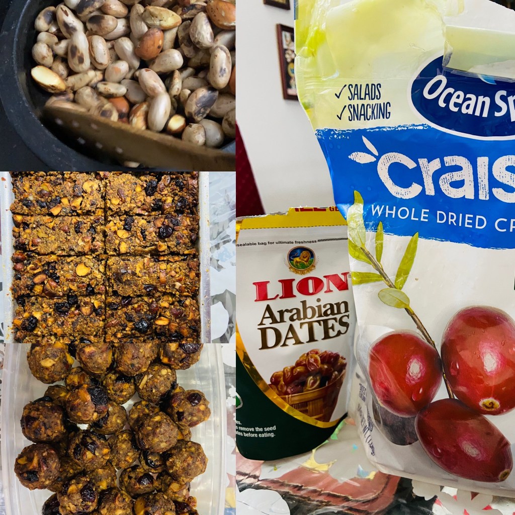 Half the quantity were spread on a greased baking tray and the other half made into balls. The mixture in tray was then baked and cut into bars.