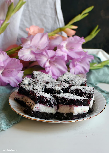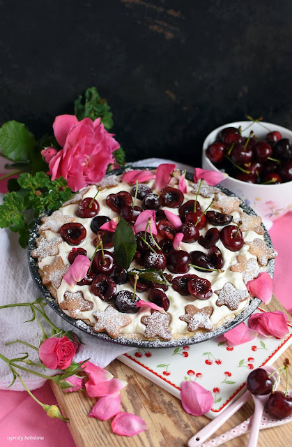 W miseczce wymieszać twarożek ze śmietaną oraz posiekanymi ziołami, doprawić do smaku solą i pieprzem. Ciasto francuskie podzielić na kwadraty, ułożyć je na blasze wyłożonej papierem do pieczenia, nie przecinając do końca wykroić nożem na cieście centymetrowy margines. Na cieście równomiernie rozłożyć nadzienie, na wierzchu ułożyć nadziane kwiaty, całość polać oliwą. Tarty wstawić do piekarnik nagrzanego do 180° C, i piec około 35 minut.