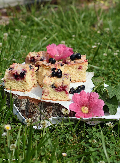 Do miski przesiać mąkę, dodać cukier i pokrojone na kawałeczki masło. Rozcierać składniki palcami aż powstanie kruszonka. Na ciasto wyłożyć owoce, a następnie rozsypać kruszonkę. Odstawić w ciepłe miejsce, na około 40 minut do czasu, aż ciasto podrośnie. Blachę z ciastem wstawić do zimnego piekarnika, włączyć go, nagrzać piekarnik do 180° C. Piec ciasto około 50 minut, aż brzegi ciasta ładnie się zrumienią na złoty kolor, wówczas sprawdzić patyczkiem środek ciasta, patyczek powinien być suchy.